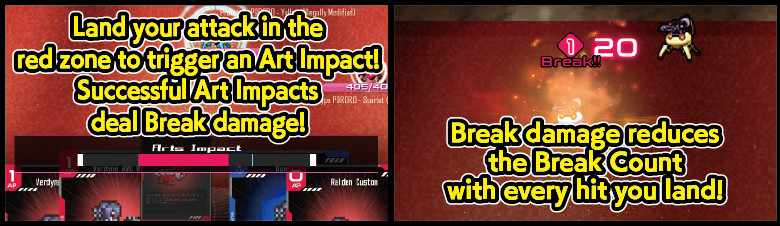 Use Strike Arts (Red attack cards) to execute Art Impacts and deal Break damage! (Land your attack in the red zone to trigger an Art Impact!)