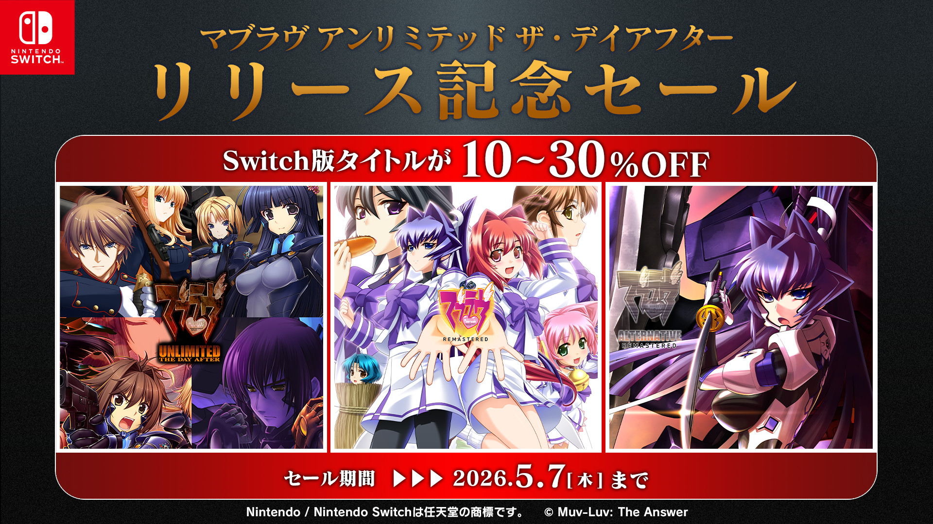 リリースを記念し、ニンテンドーeショップでは『マブラヴ アンリミテッド ザ・デイアフター』episode:00~03が10%オフとなるリリース記念セールを開催中です。