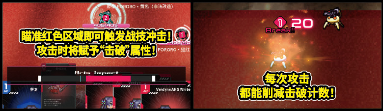 每次攻击都能削减敌人的“击破计数”。当计数被打到0时,该敌人就会进入“击破”状态!
